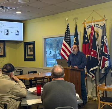 Each month, the Camp hosts an engaging and thoughtfully curated program designed to explore and illuminate the authentic history of the South. These presentations invite both members and visitors to step beyond the surface of well-known narratives and gain a deeper understanding of the people, events, and principles that shaped a defining era in American history.