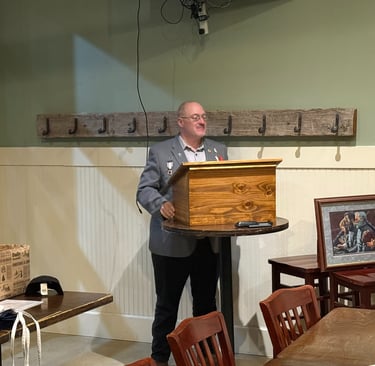 Commander Oliver presenting a program on the arrival and utilization of Barbed Wire in Texas.
