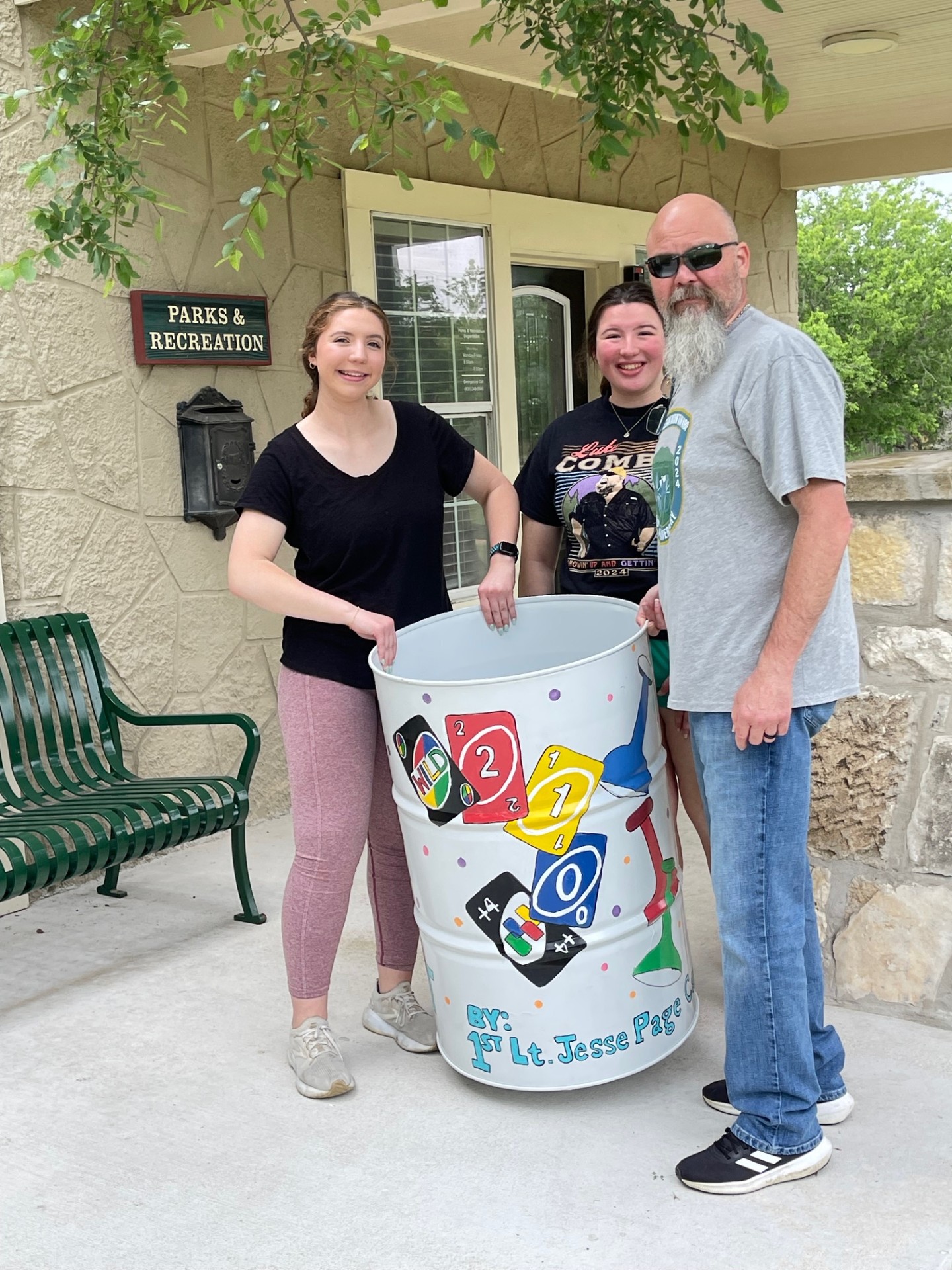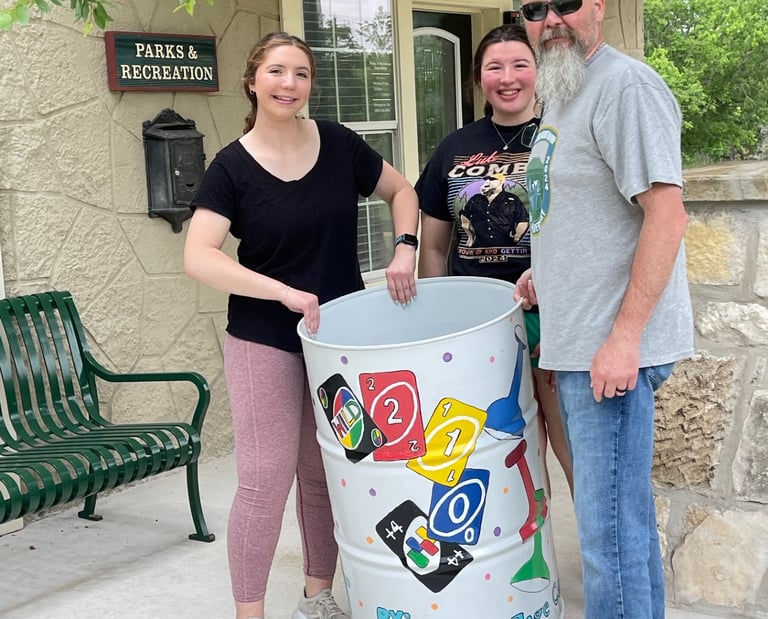 Each year, Boerne Parks and Recreation invites residents to take a plain old boring trash can and transform it into a work of art. A different theme is picked each year. Previous themes have included sports, nature, and superheroes! The theme for 2025 was Family Game Night, and we think we knocked it out of the park!